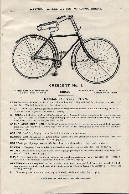This Crescent nr. 1 is a beautiful safety from the USA. The owner thinks it is the 1891 model. It has a very low-built frame, which was a trend for the American manufacturers in 1891-1892. They were working towards the final diamond frame, but at that time they hadn't found it yet, that's clear. This Crescent was not the most expensive model of those days, but compare it to the Sterling, which was built only 2 or 3 years later. What a development they made in such a short period!